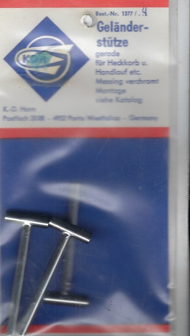 Geländerstütze gerade Messing-verchromt, für Heckkorb für 4 mm(/)* 3-Stück im Beutel