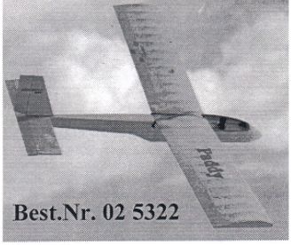 !PADDY ARF ELEKTRO-Segelflugmodell Best.Nr.J025323 Wenn Sie in das Elektro-Segel-Modellflug-Hobby einsteigen wollen, ist unser Modell PADDY ideal für Sie. Gesteuert über Höhe,Seite und Motor, verfügt PADDY über gutmütige Flugeigenschaften. Egal ob im Hochstart oder im anschließenden Motorlosen Flug, PADDY zeigt sich von seiner besten Seite. Ideal für den Einstieg. Ein Holzmodell in ARF- almost ready to fly- Ausführung, fertig bespannt, ist nach wenigen Arbeitsschritten -Leitwerke verkleben und RC-Komponenten und Antrieb einbauen- Flugbereit.