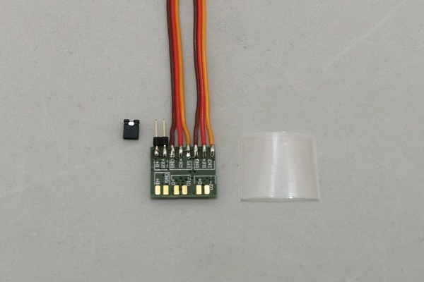 Technische Daten: • Betriebsspannung (über Empfänger): 4,0 – 8,4 V • Externe Spannungsversorgung: 4,0 – 21,0 V DC • Max. Schaltstrom pro Kanal: 7,5 A • Max. Schaltspannung: 21 V • Abmessungen: ca. 16 × 21 × 5 mm (ohne Kabel) • Gewicht: ca. 8 g • Benötigte Steuerkanäle: 2 Schaltkanäle